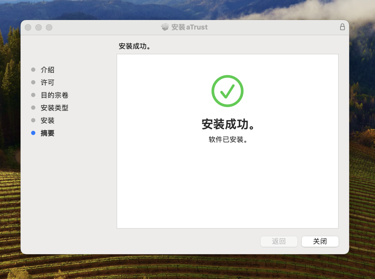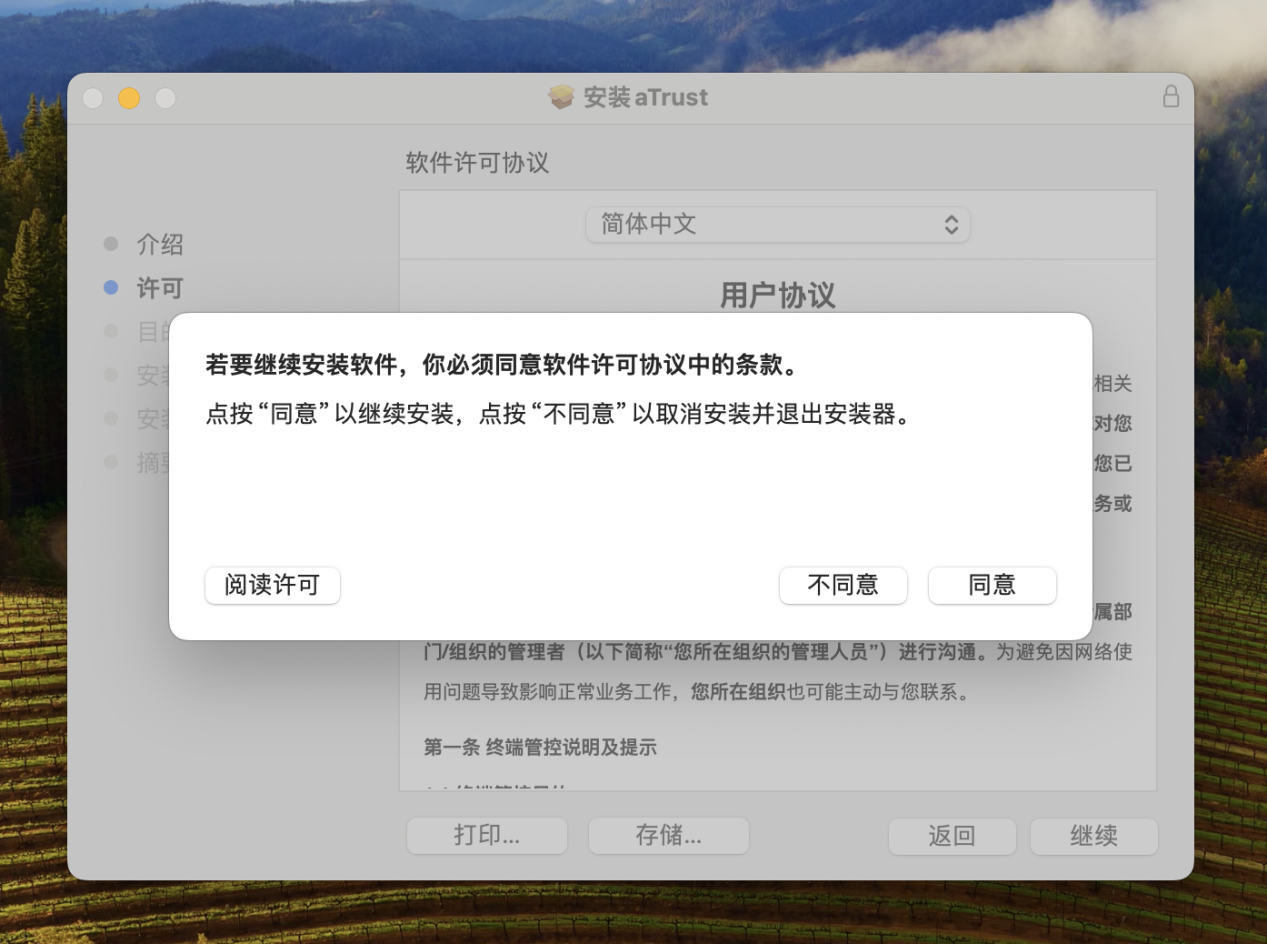 下载完成后,按照默认方式安装。安装后首次登录时,按照提示【允许】将aTrust添加到VPN配置中。