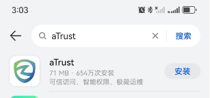 鸿蒙、Android、IOS等移动端设备也可以在应用商店或应用宝中搜索 “aTrust”,如图5所示,找到对应客户端后单击下载安装。