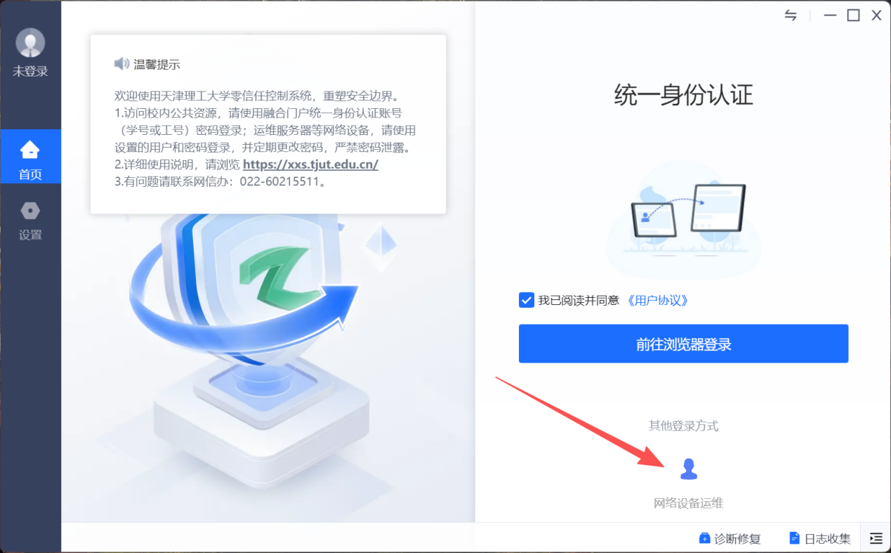 零信任访问控制系统提供两种身份登录认证:统一身份认证和网络设备运维,如图11所示。